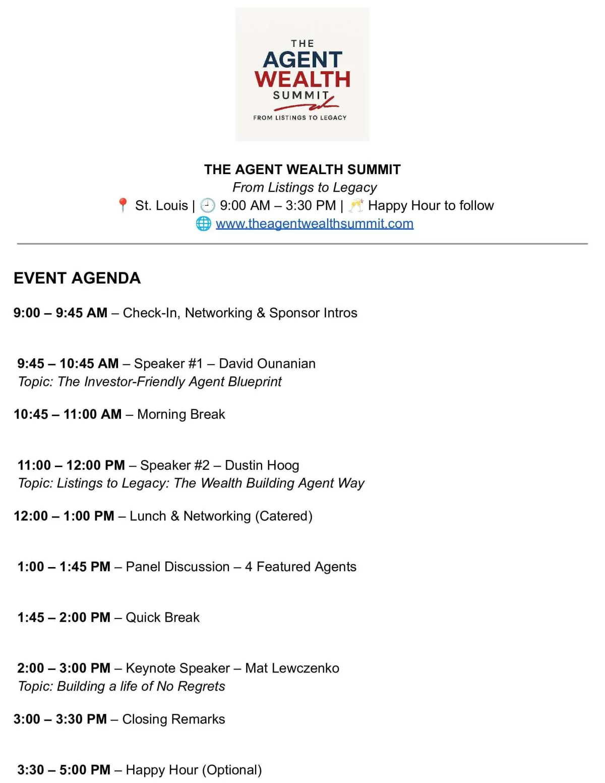 These aren’t theories. These are the exact challenges your peers have faced and the solutions they’ll share with you at The Agent Wealth Summit.